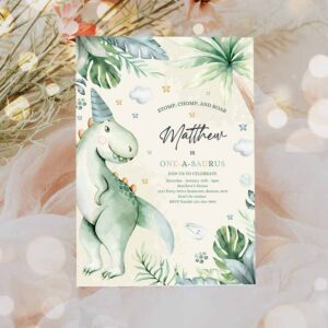 One-A-Saurus Dinosaur Kids Birthday Invitation, Dinosaur T-Rex Kids Birthday Party, Boy Dinosaur Kids Birthday Party