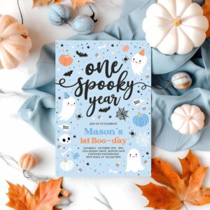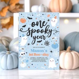 One Spooky Year Cute Blue Ghost 1st Party Invite Cute Boy Ghost 1st Birthday Spooktacular Party