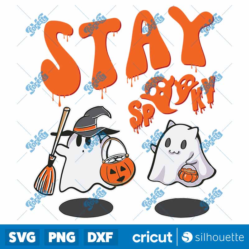 Orange Groovy Funny Cute Ghost Stay Spooky Halloween Ghost SVG