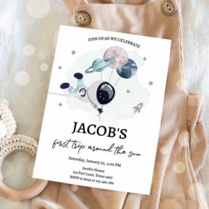 Out of This World Kids Birthday Invitation, Outer Space Planets Rocket Ship Galaxy Astronaut Silver Boy