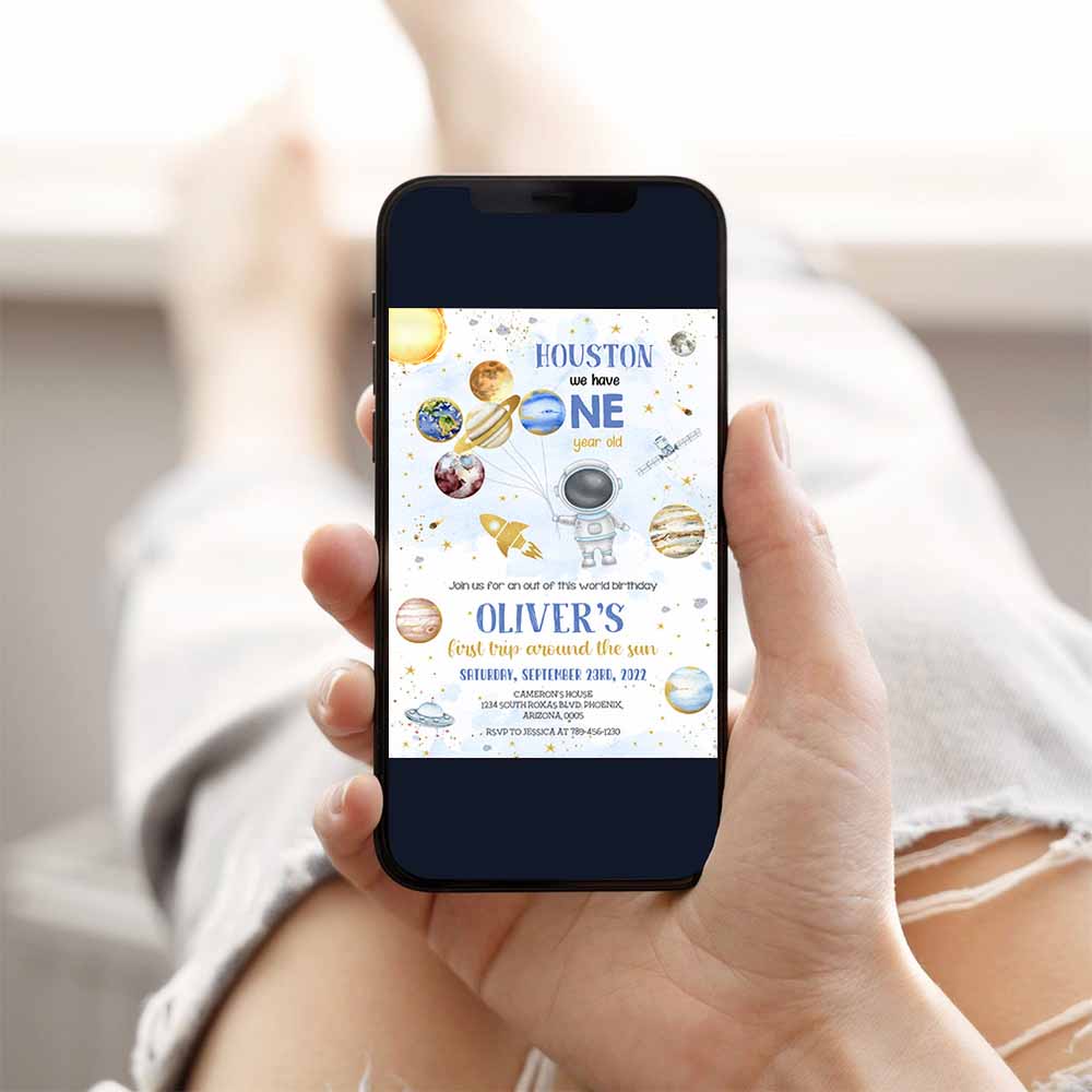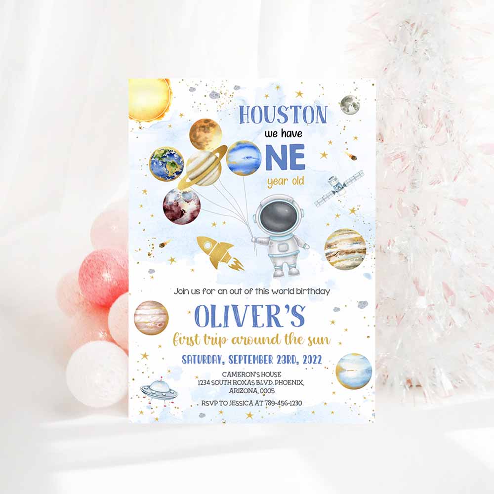 Outer Space Birthday Invitation Template, Planet Rocket Ship Astronaut Invite, First Trip Around the Sun Invitation, Space Galaxy Invitation
