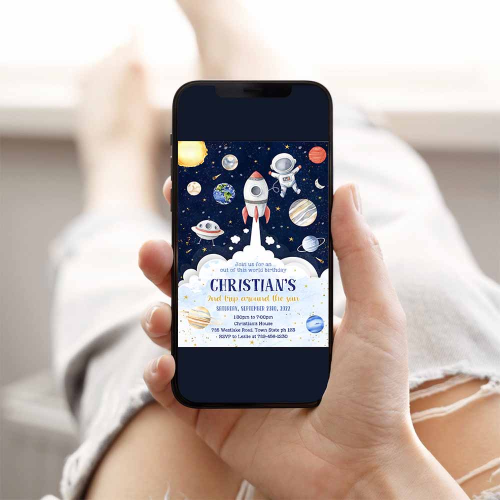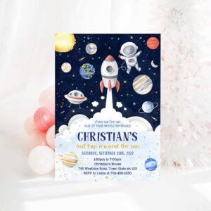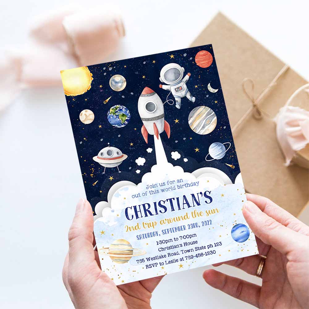 Outer Space Birthday Invite, Planets Rocket Ship Astronaut Invite, Galaxy Blast Off Invitation