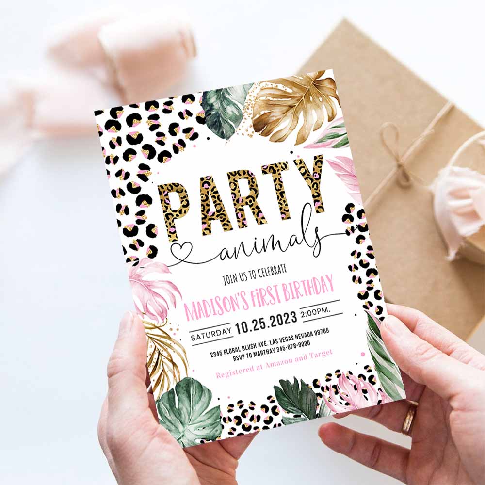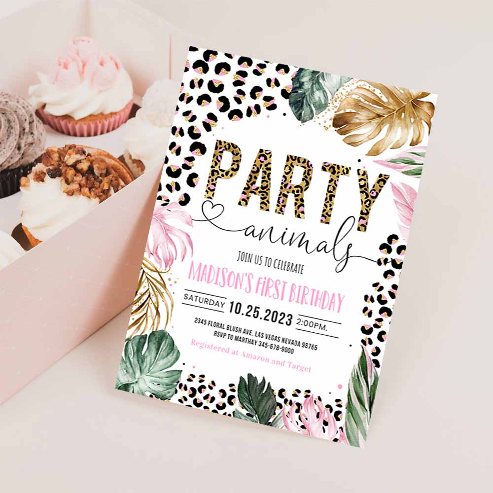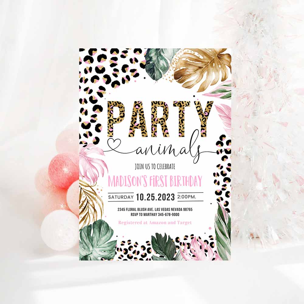 Party Animals Birthday Invitation Leopard Print Jungle Birthday Party Leopard Print Wild One Two Wild