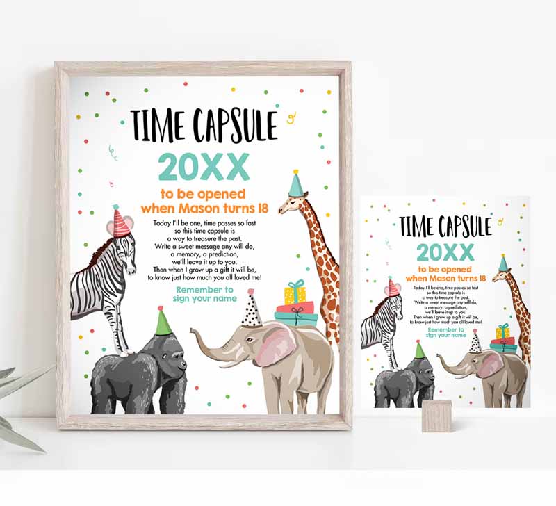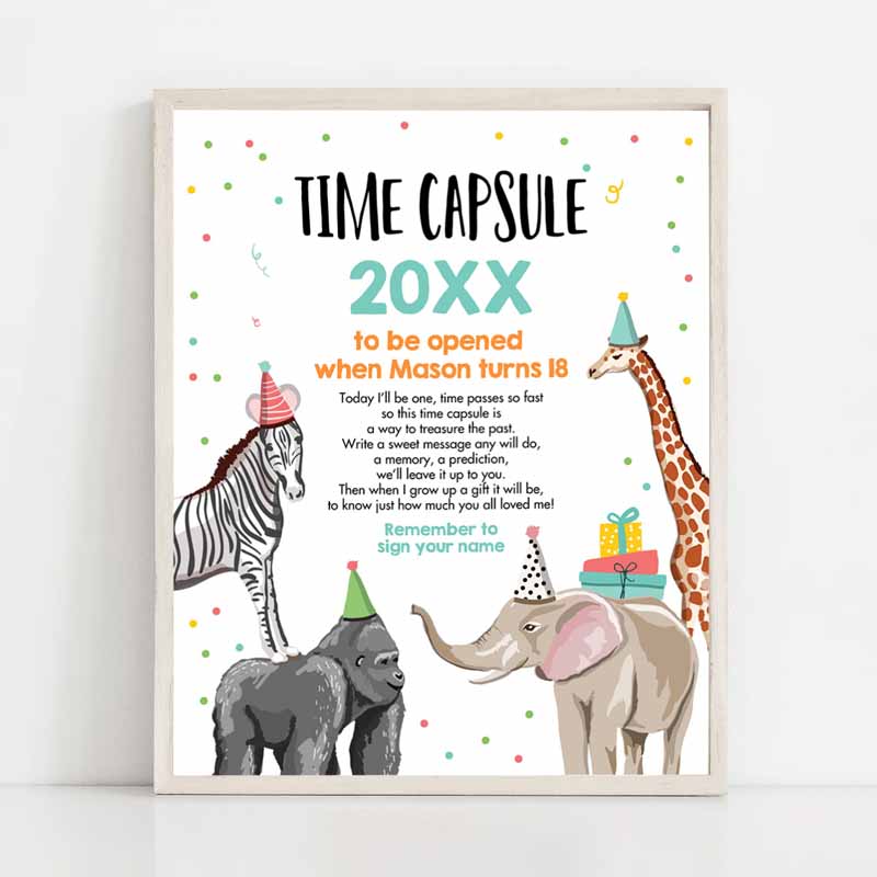 Animals Time Capsule Boy First Kids Birthday, Wild One First Kids Birthday Party, Zoo Safari Animals Jungle