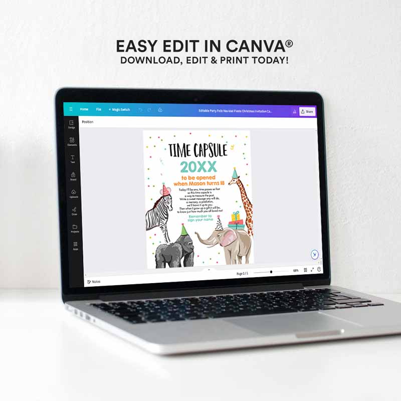 After purchase you will receive an email with a link to download TXT file containing instructions and links to your editable Canva template. Canva is an online design site that is free to use. If you do not have a Canva account you will need to sign up for a free account in order to save and edit your work. Please get in touch if you have any difficulty whatsoever in receiving, editing or printing your files.