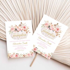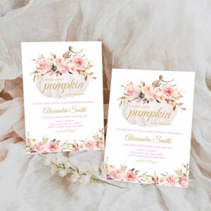 Pink Floral Pumpkin Baby Shower Invitation, Girl Fall Baby Shower Invite
