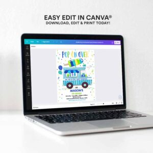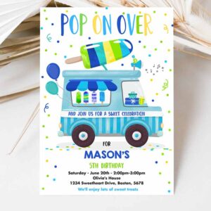 Popsicle Kids Birthday, Pop On Over Popsicle Party, Popsicle Truck Party Invitation, Ice Cream Truck Party