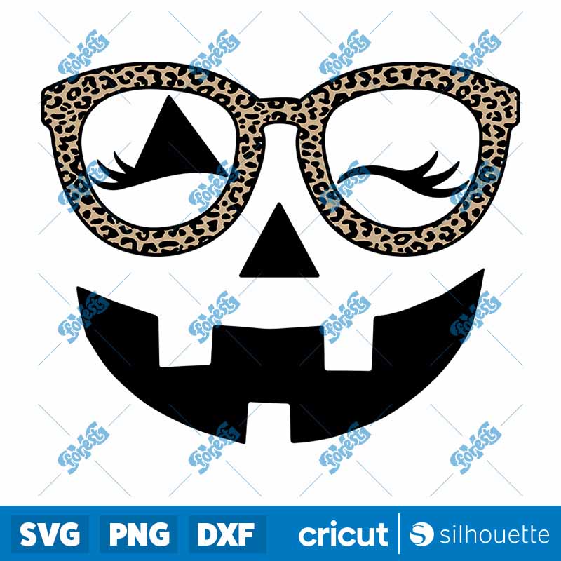 Pumpkin Face With Glasses SVG, Funny Pumpkin Leopard Glasses Design