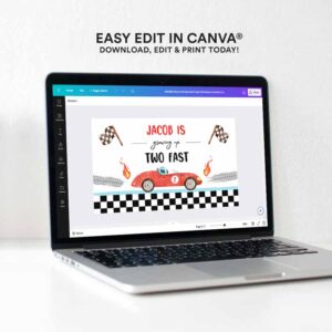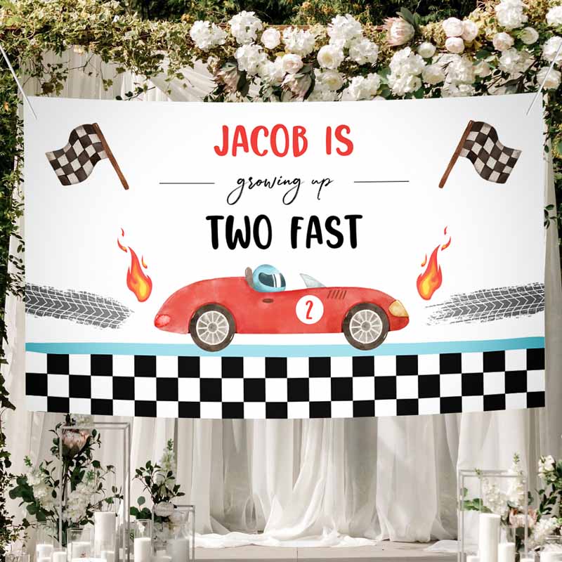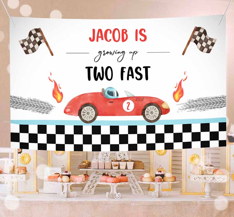 Racing Car Backdrop Banner, Growing Up Two Fast Kids Birthday, Boy Second Fast Two Curious