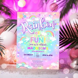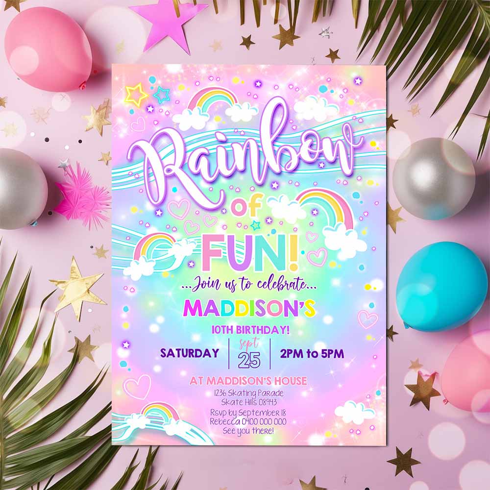 RAINBOW Cloud Invitation, Rainbow Neon Party Invitation