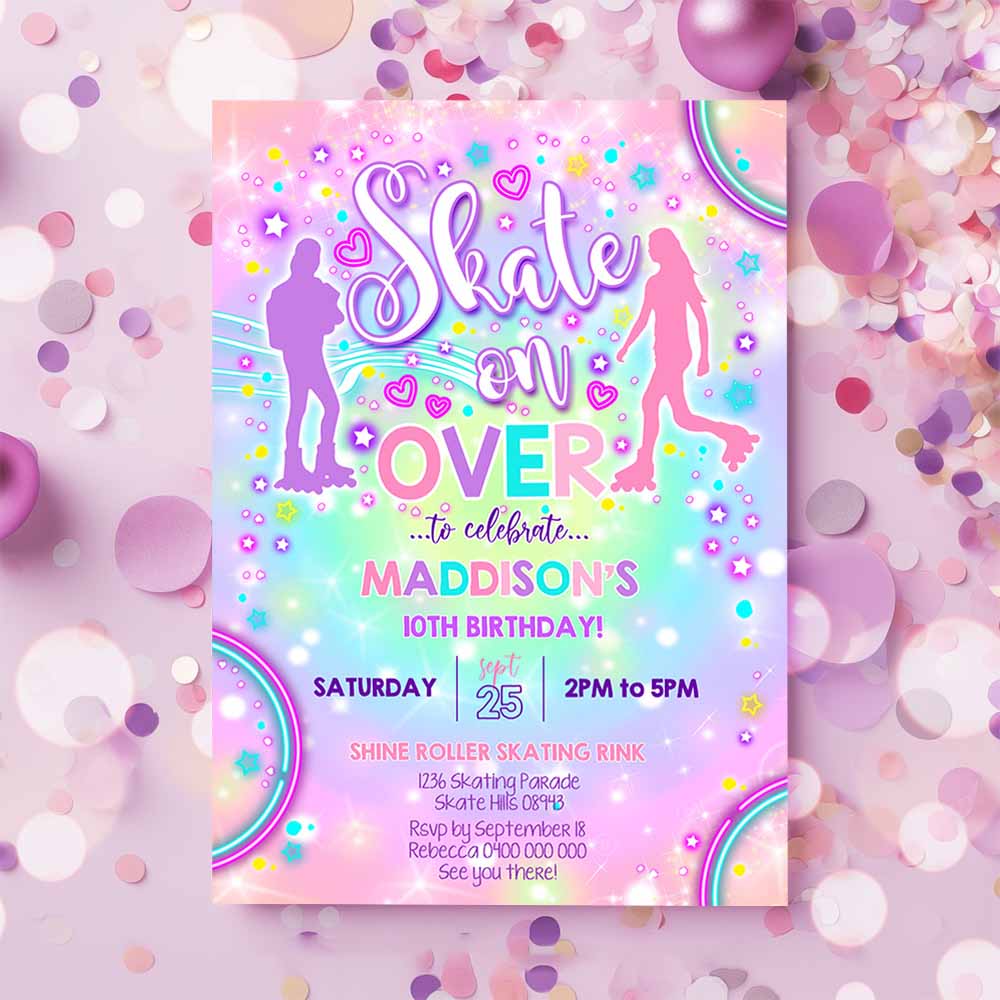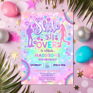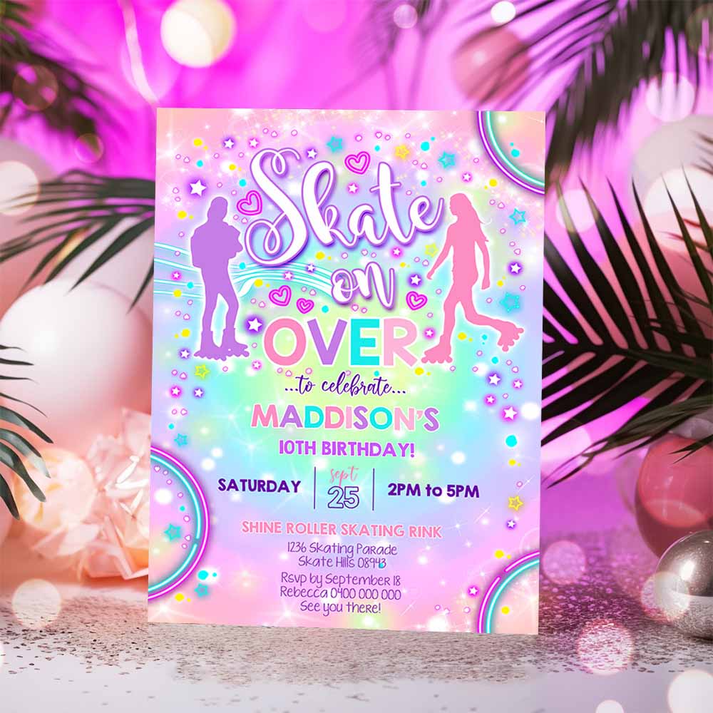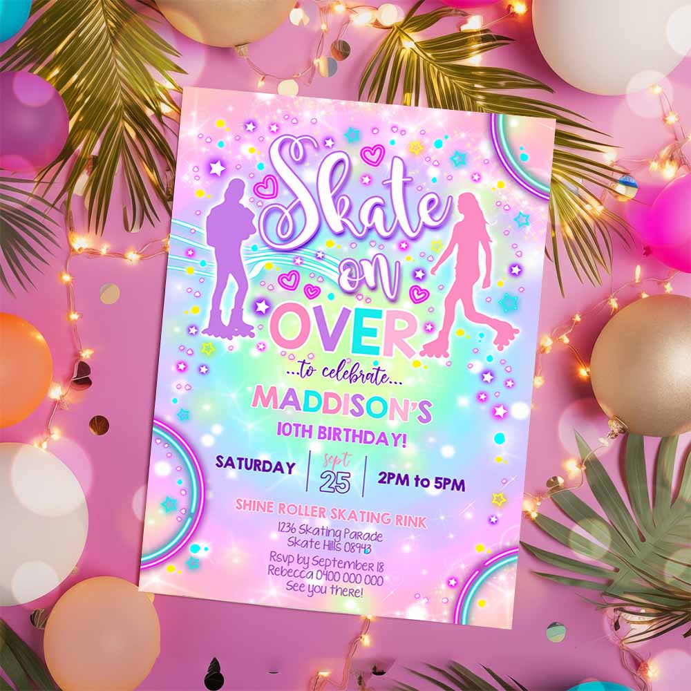 ROLLER SKATING BIRTHDAY Invitation, Roller Skate Invitation, Roller Skate Tie Dye Invitation, Neon Skate Party Skate on Over