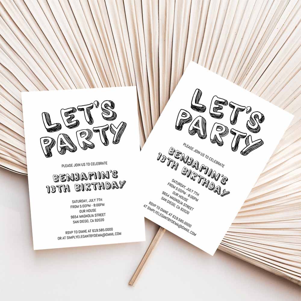 Simple Black and White Birthday Invitation, Template, ANY AGE, Birthday Invitation, for Boys Teens Kids Girl