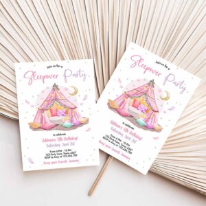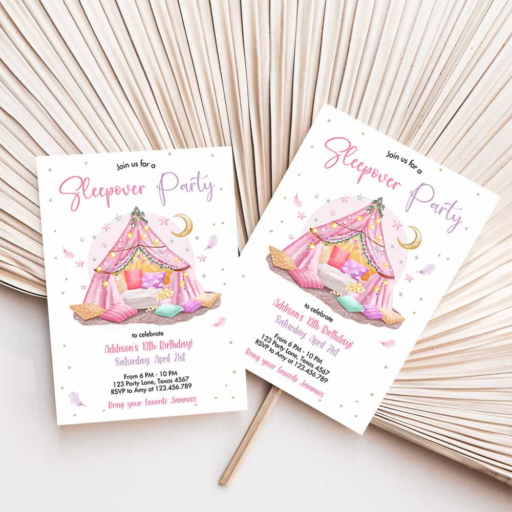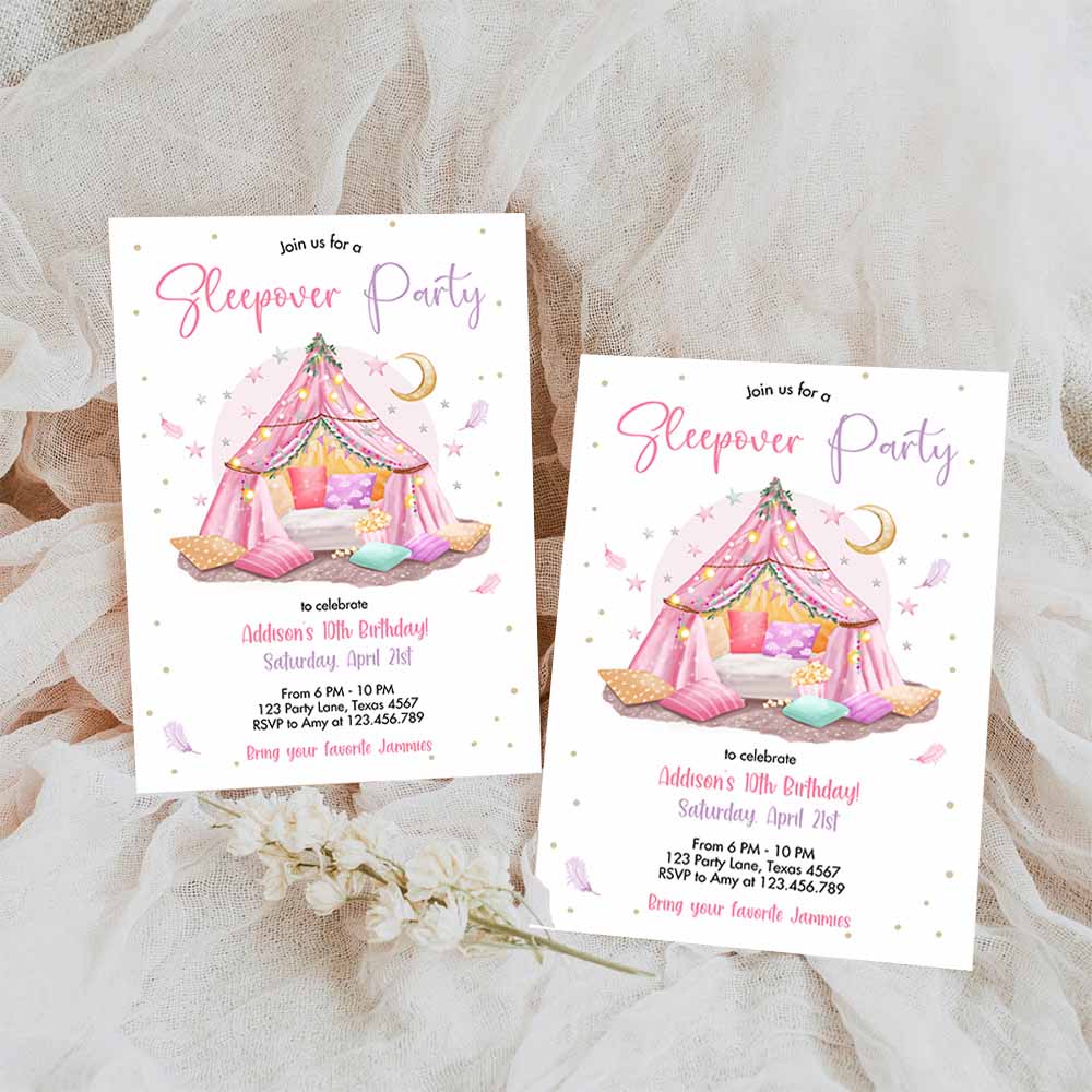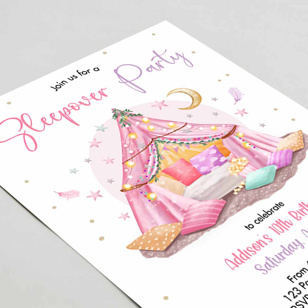 Sleepunder Party Birthday Invitation, Slumber Party Invite Pink Spa Tween Teen Glamping Movie