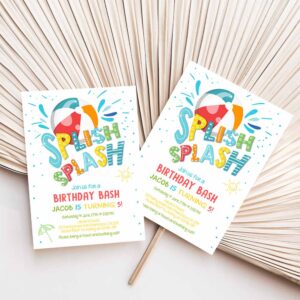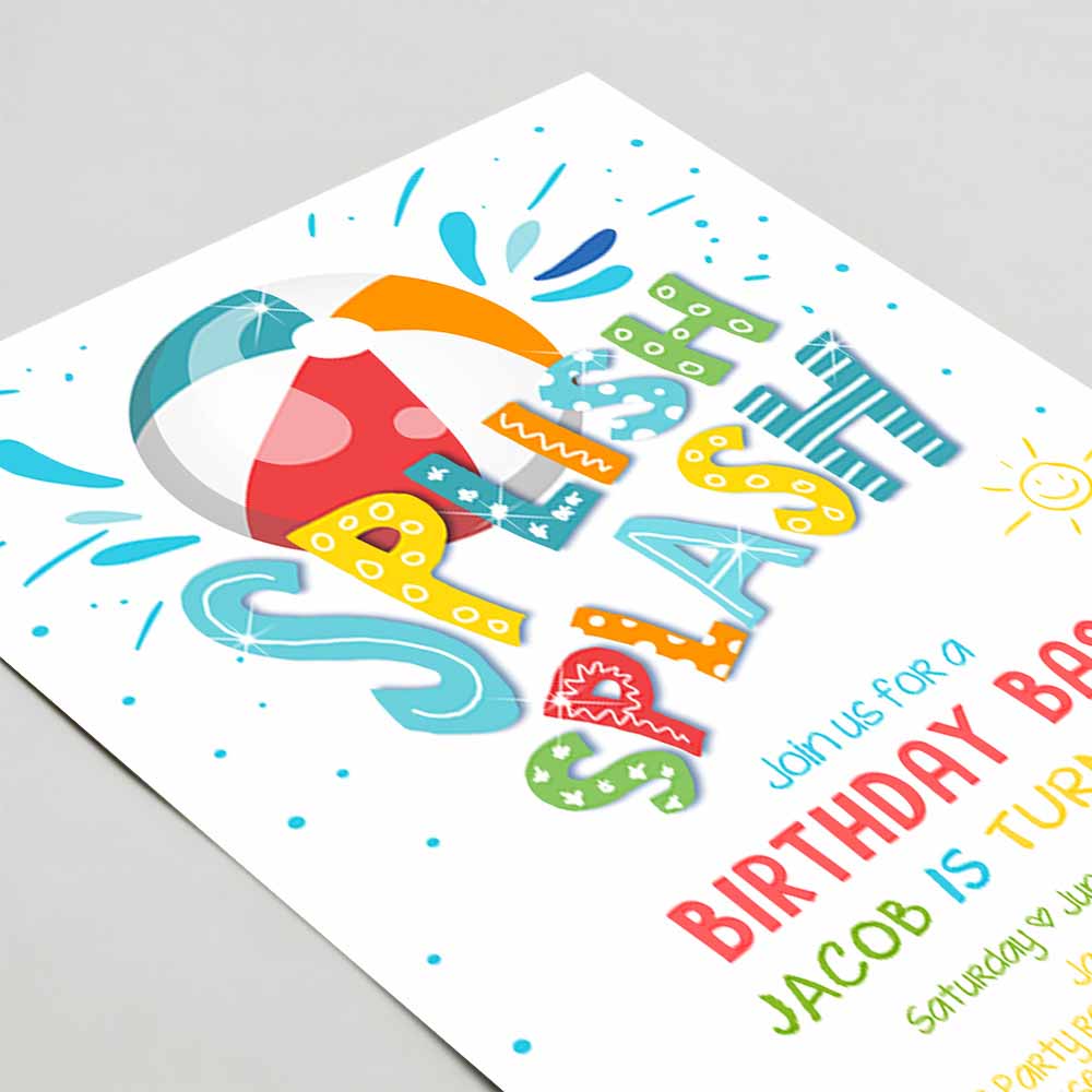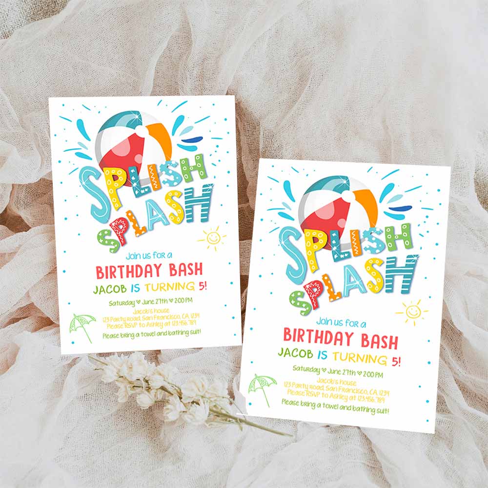 Splish Splash Birthday Invitation, Pool Party Boy Beach Ball Blue Green Birthday Bash
