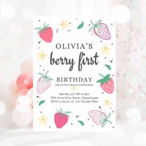 Strawberry Kids Birthday Party, Invite Berry First Kids Birthday Invitation, Summer Berries Kids Birthday, Berry Sweet