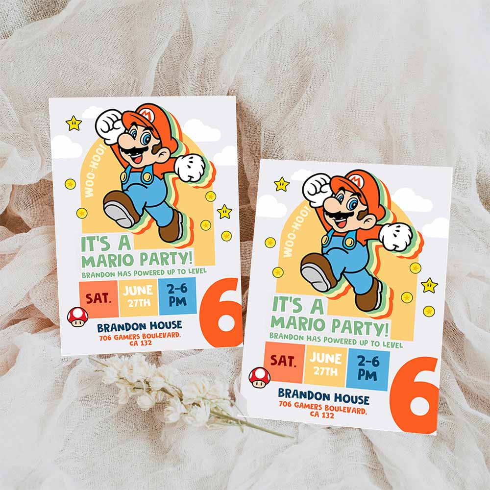 Super Mario Birthday Invitation, Birthday Invitation, Super Mario Invitation