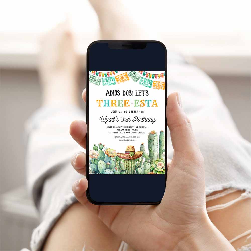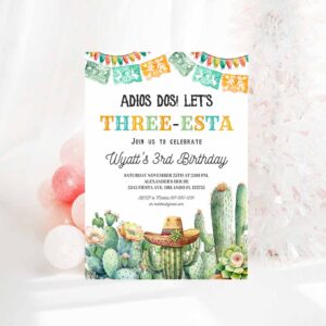 Three esta birthday invitation three esta invite fiesta 3rd birthday Mexican Taco Cactus Cinco de Mayou