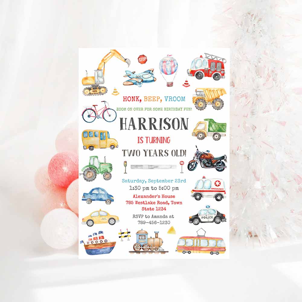 Transportation Birthday Invitation Template, Transportation Vehicle Birthday Invitation, Transportation
