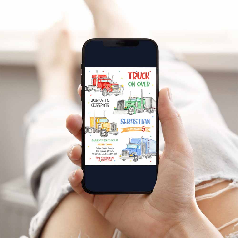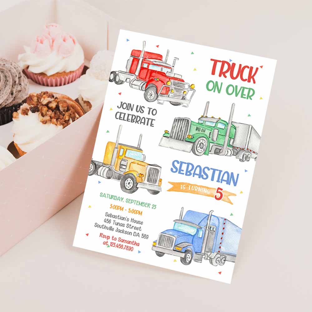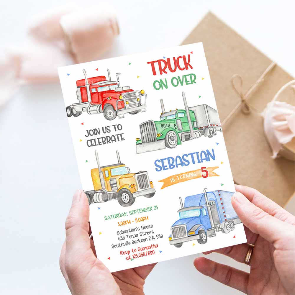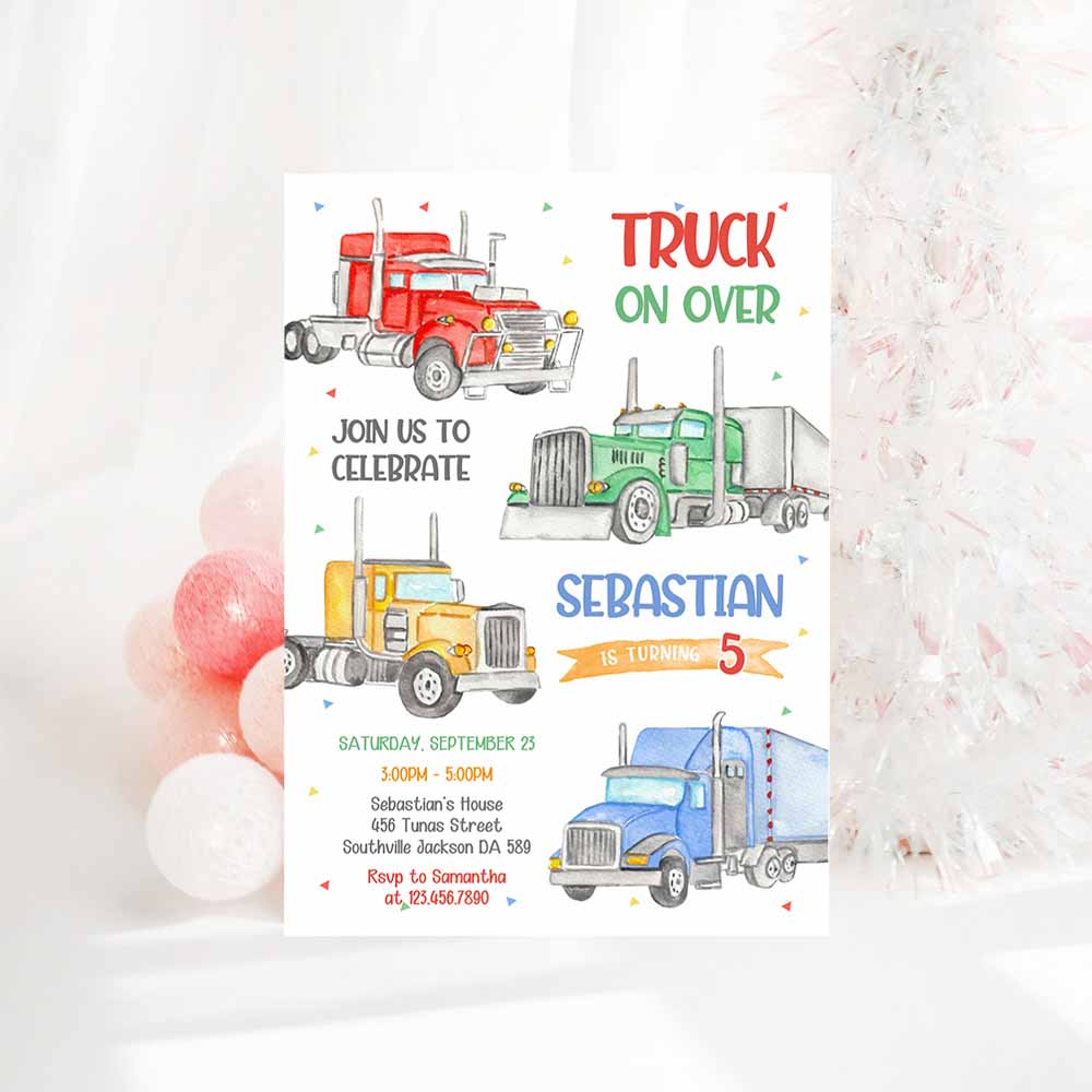 Truck Birthday Invitation Template, Semi-Truck Birthday Invitation, Truck Birthday Invitation
