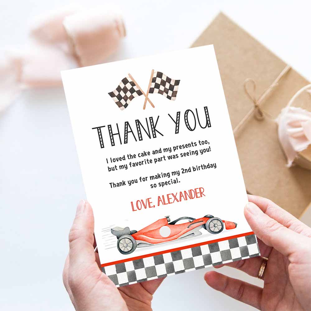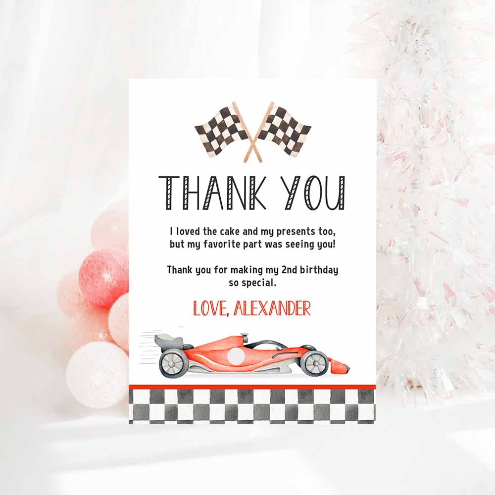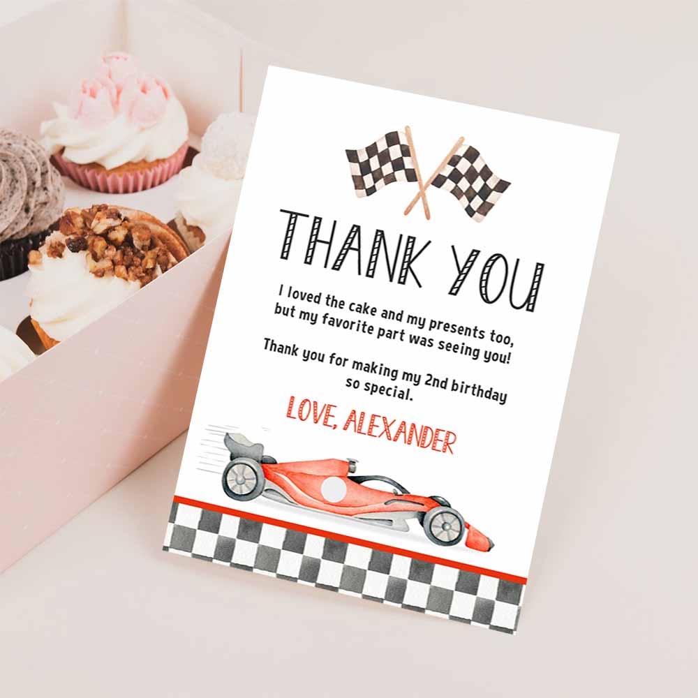 TWO Fast Birthday Thank You Card Racecar 2nd Birthday Note car Racing Car Vintage Racecar