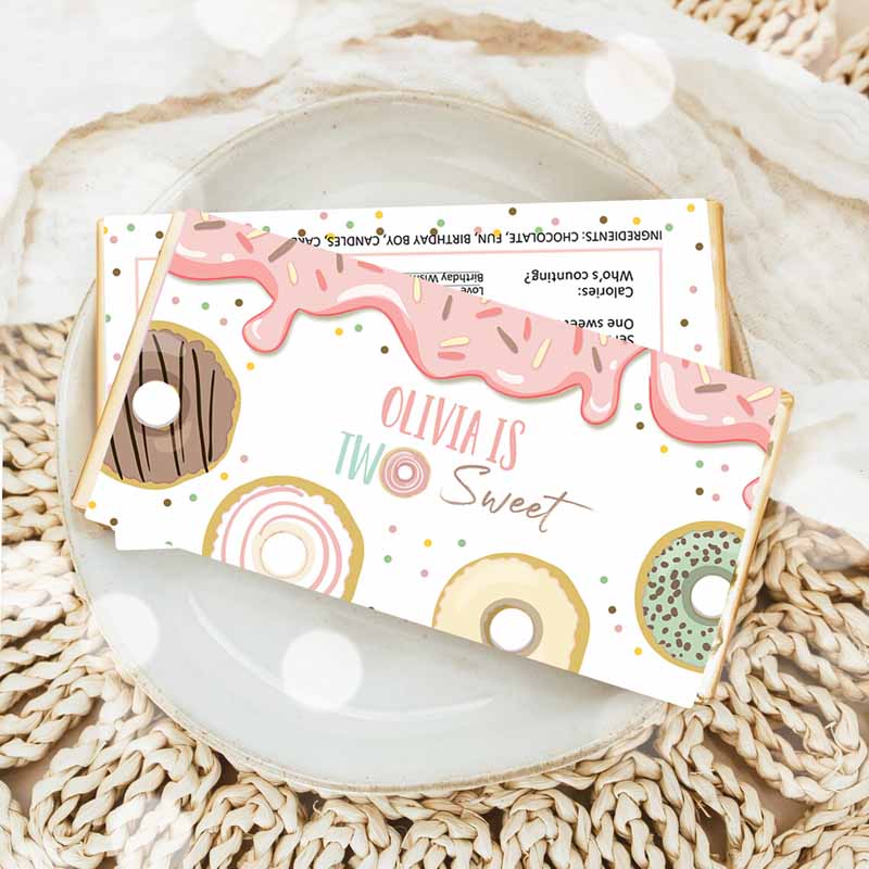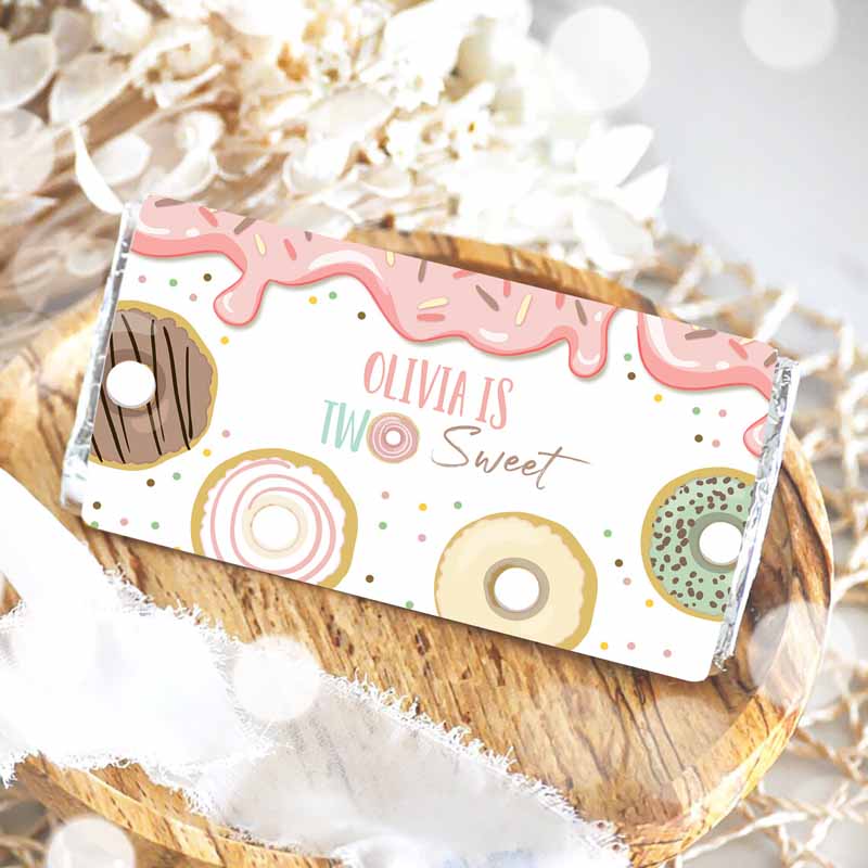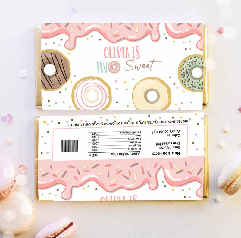 Two Sweet Donut Candy Bar Wrapper Donut Kids Birthday, Chocolate Wrapper Girl Doughnut Pink