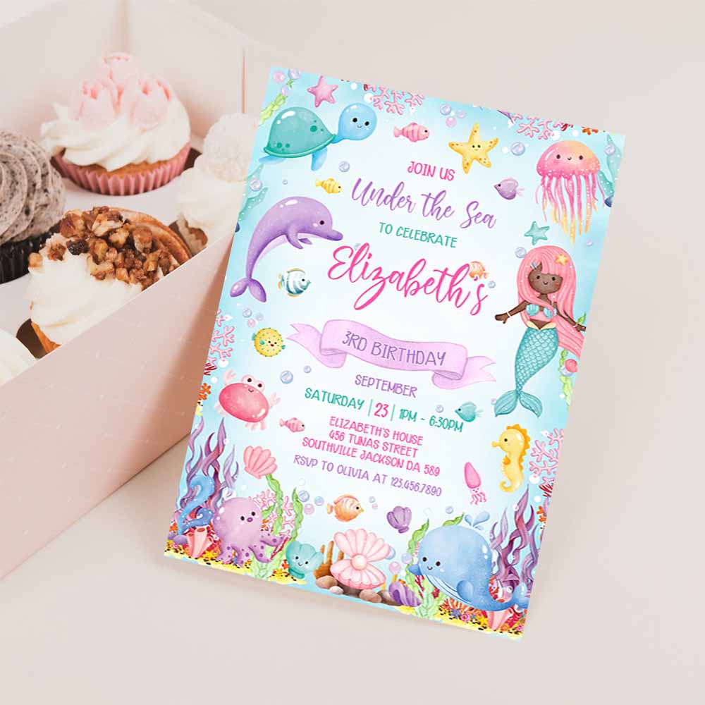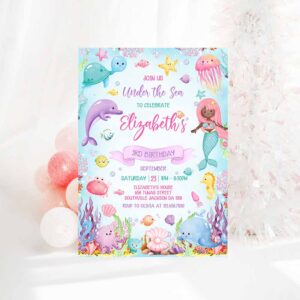 Under The Sea Birthday Invitation, Ocean Animals Party Invite Template, Under The Sea Party Invitation for Girl
