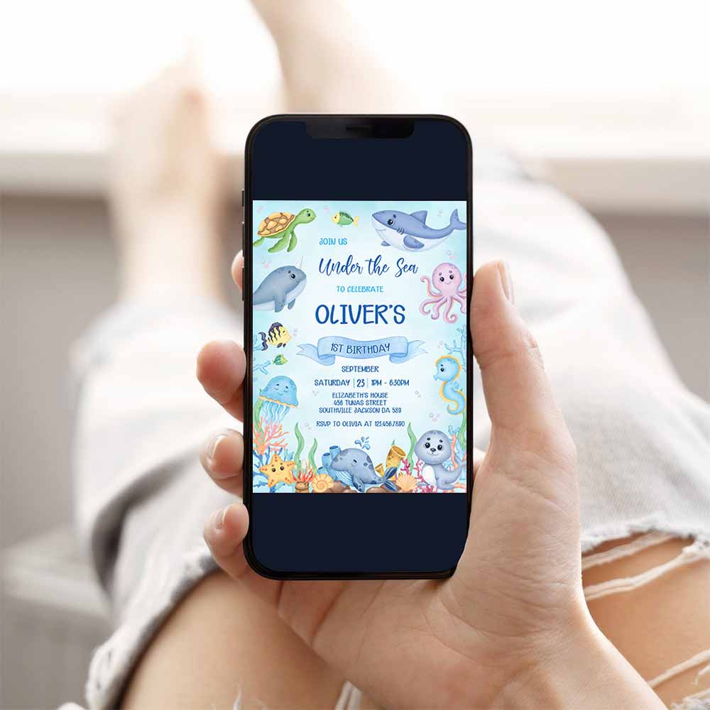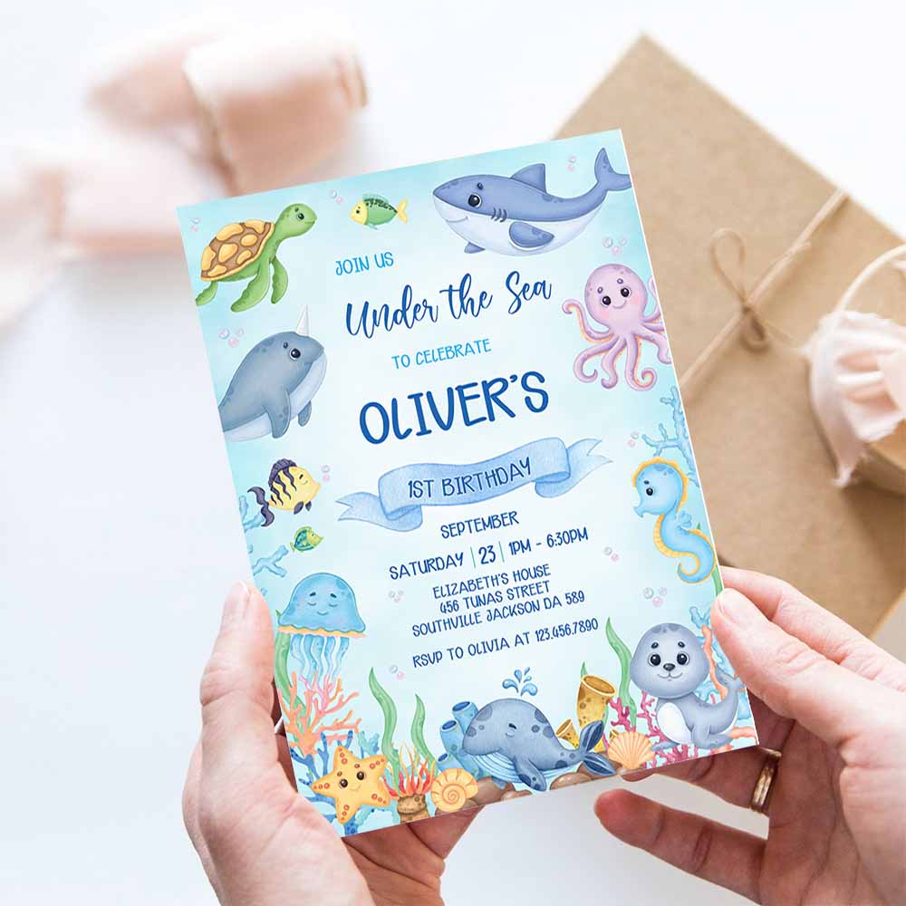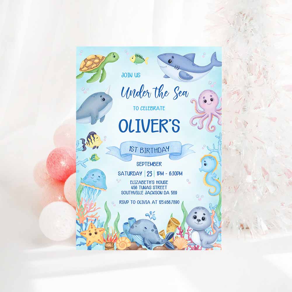 Under The Sea Birthday Invitation, Ocean Animals Party Invite, Under The Sea Invite