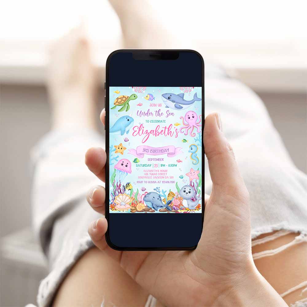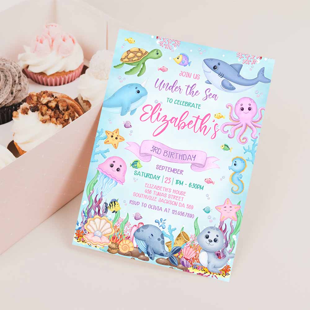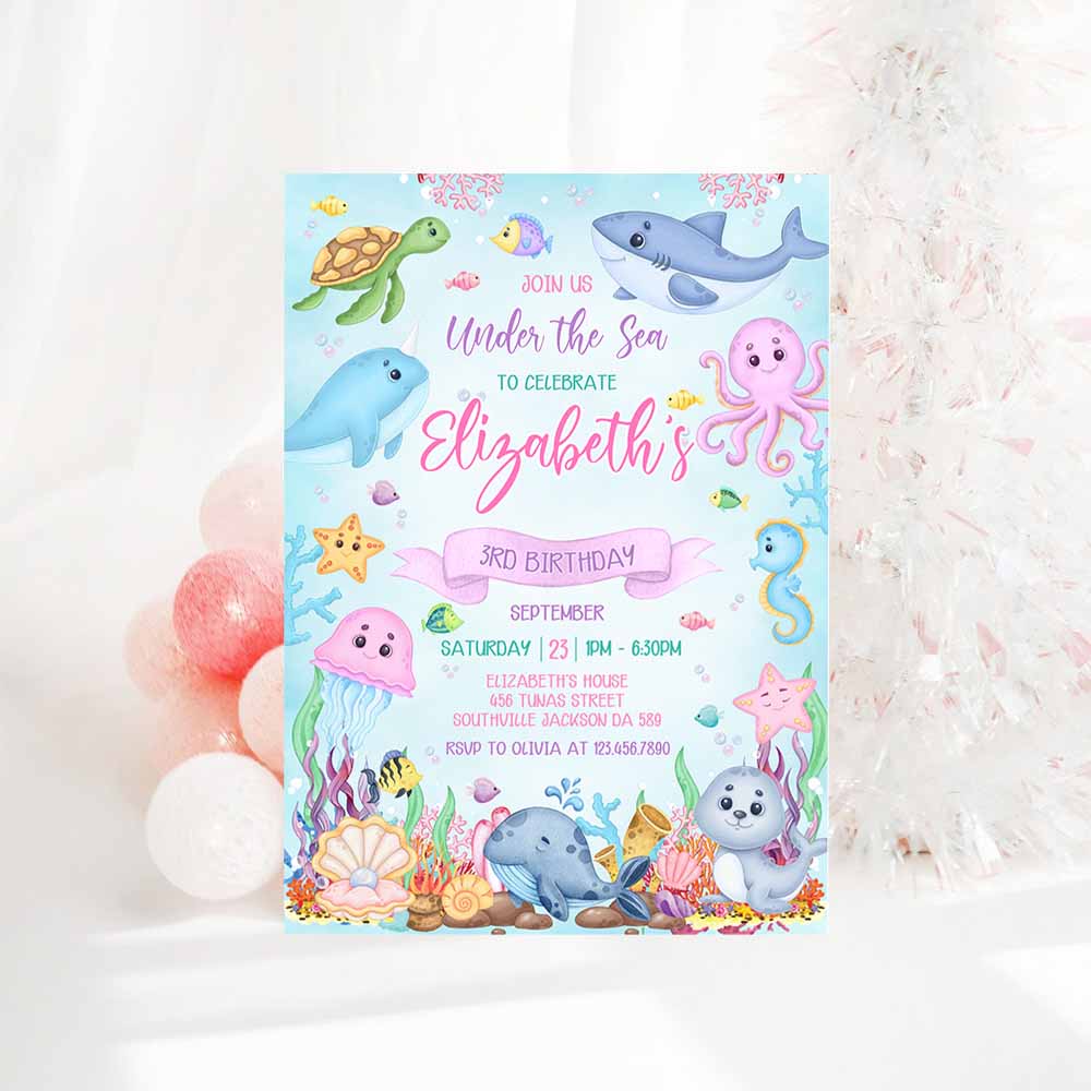 Under The Sea Birthday Invitation, Ocean Animals Party Invite, Under The Sea