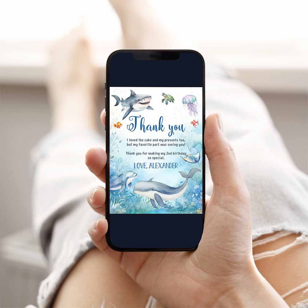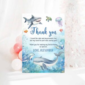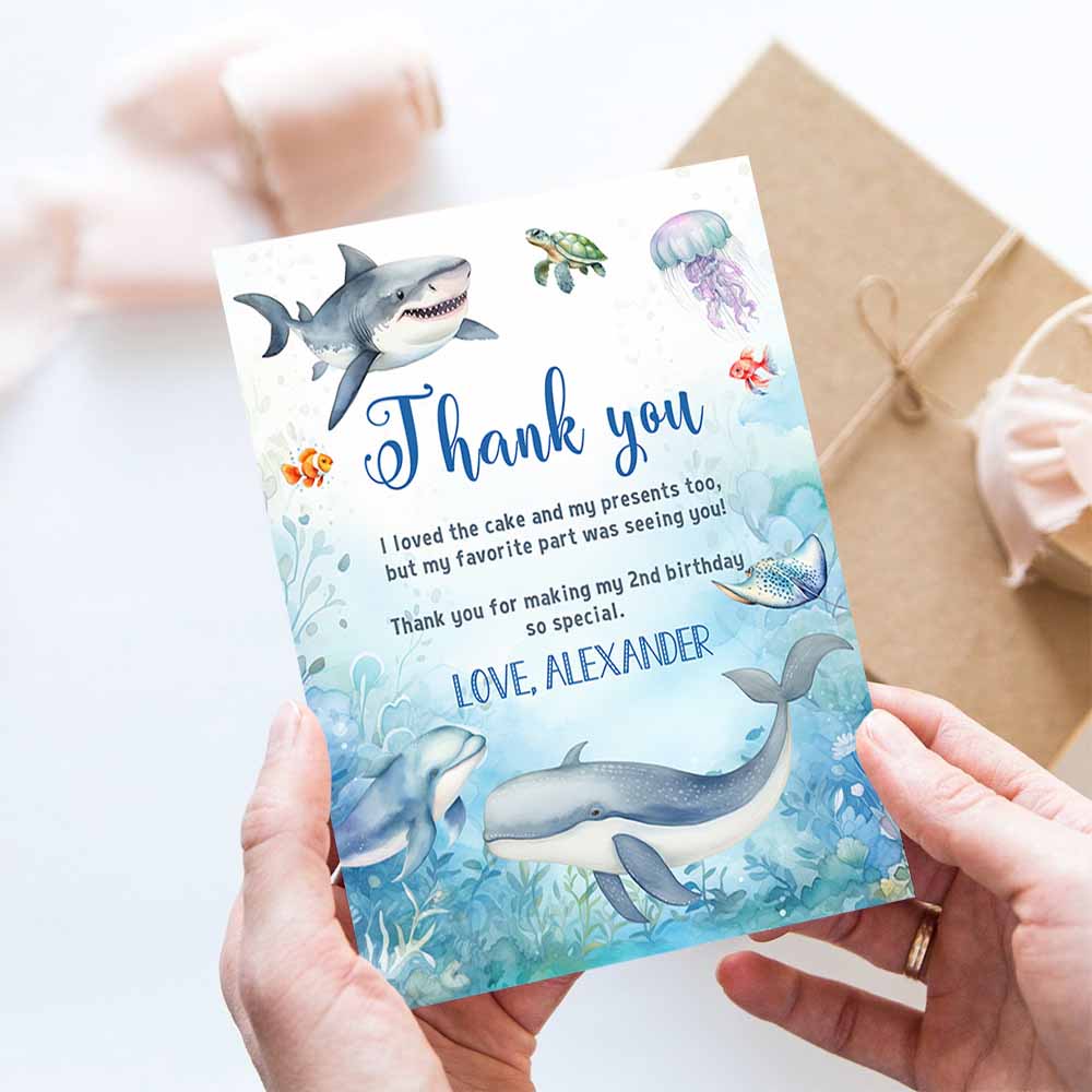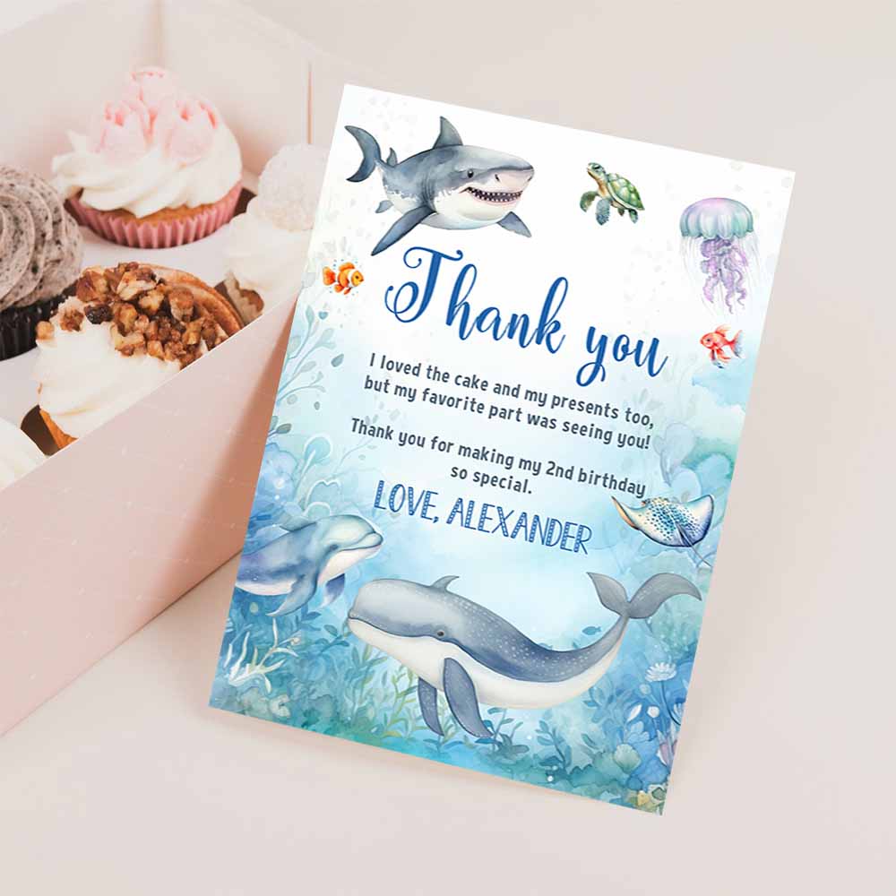 Under The Sea Birthday Thank You Card Oneder Note Car Sea animals Ocean Whale Shark Fish