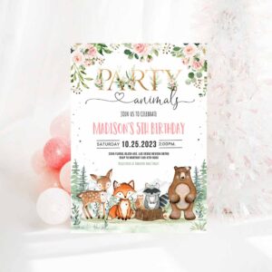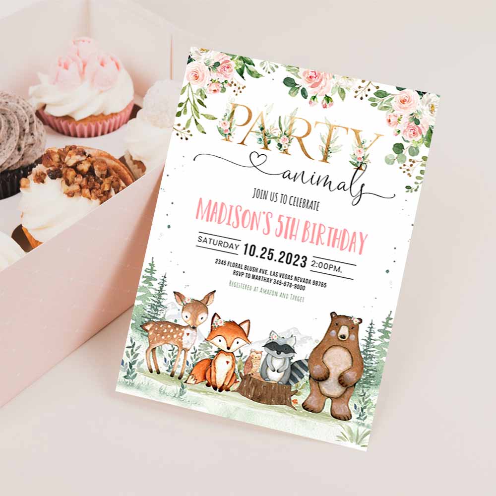 Woodland Birthday invitation, Girl Woodland Party animals invitation,Woodland Creatures Theme